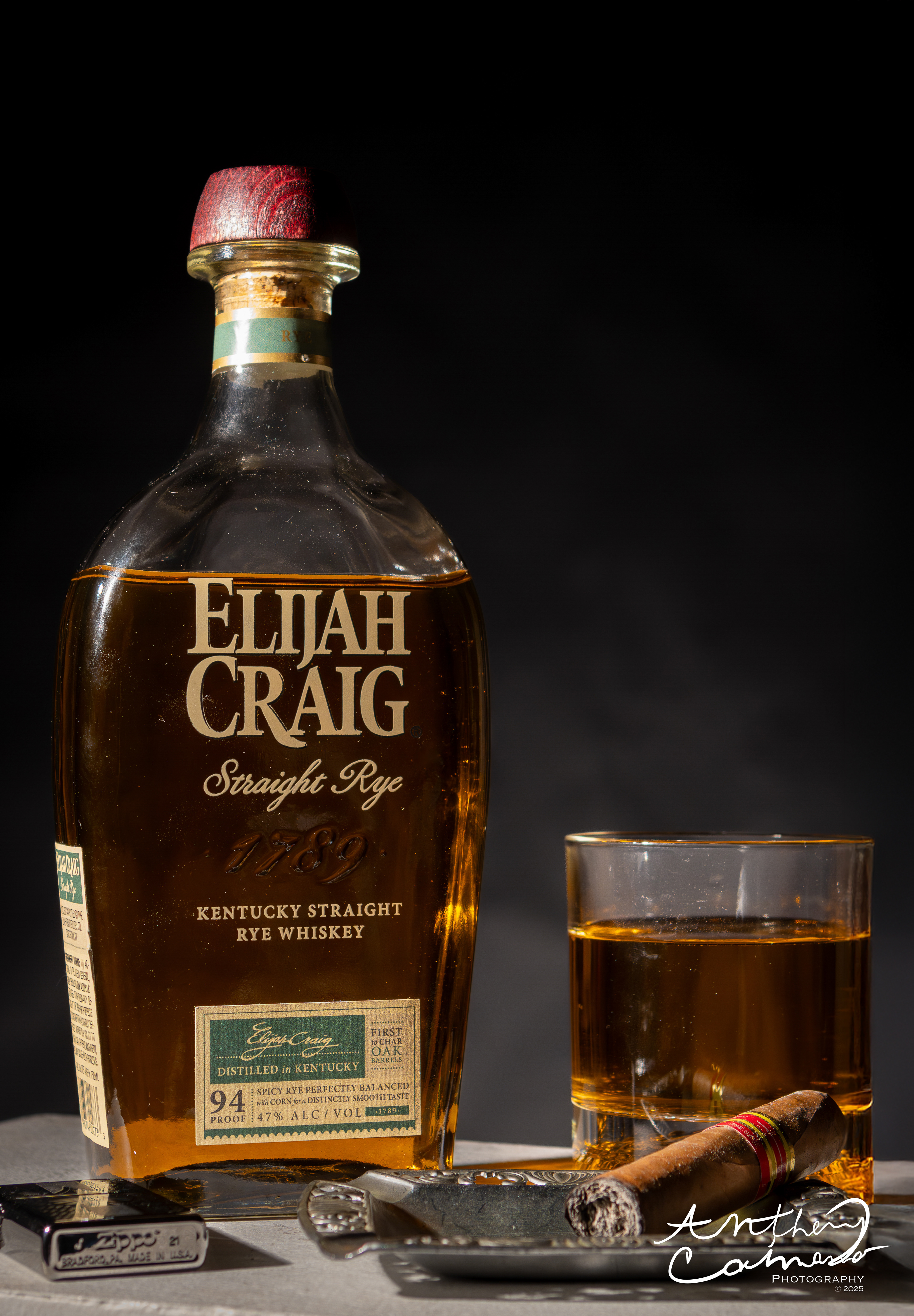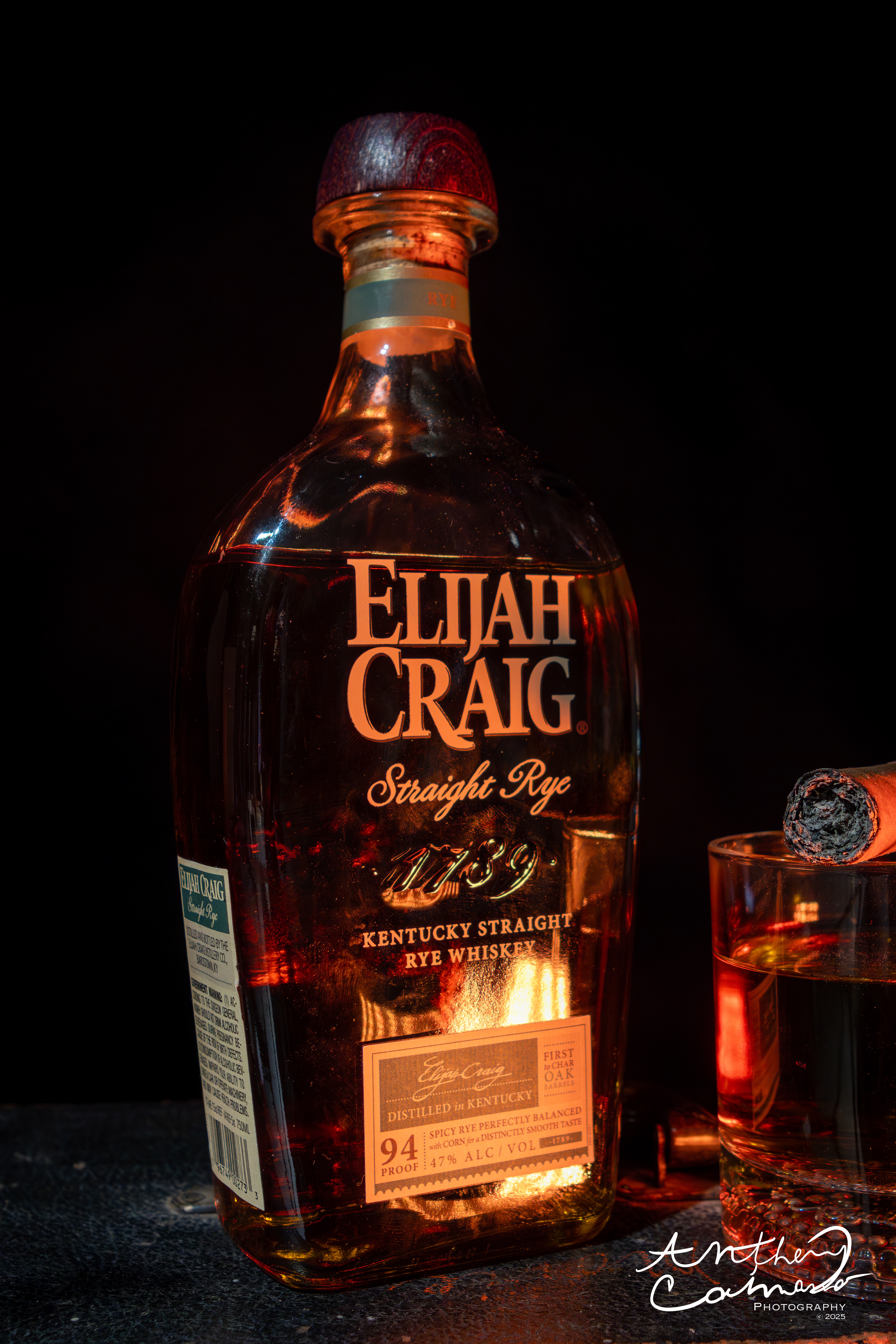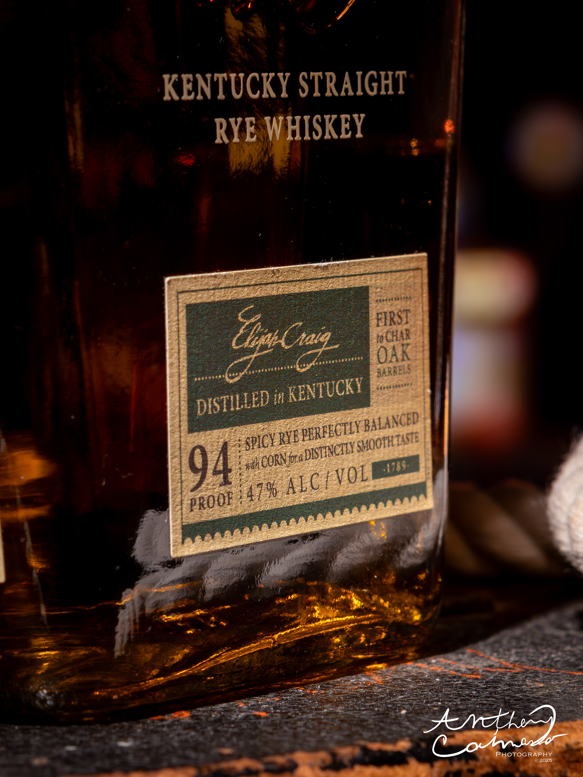 Elijah Craig liquor bottle Photography